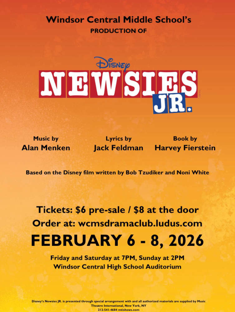 Windsor HS presents "Newsies Jr"Extra! Extra! Read all about it! The Windsor Middle School Drama Club is thrilled to bring the high-energy, inspiring story of Newsies JR to the stage.